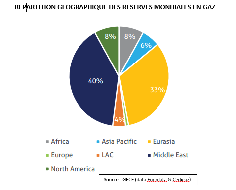 REPARTITION DE LA PRODUCTION MONDIALE DE GAZ PAR REGION